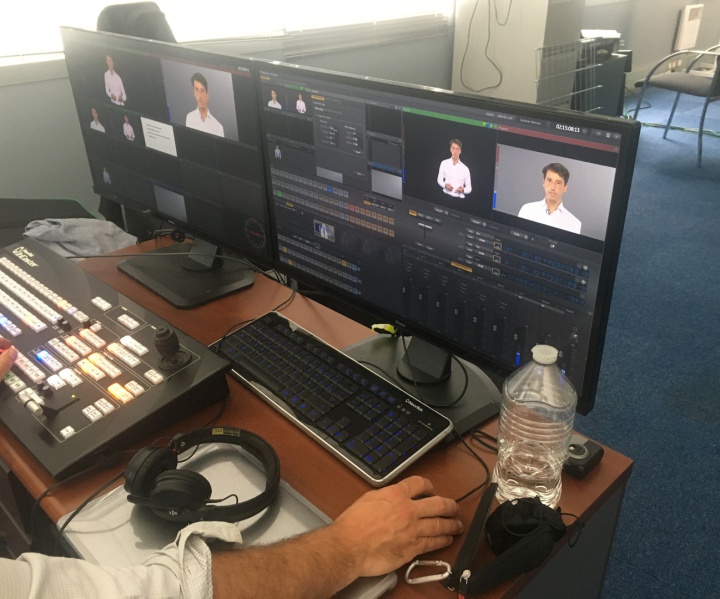 Mise en place en entreprise de plateaux de tournage avec fond vert pour web streaming. Location ou installation vente